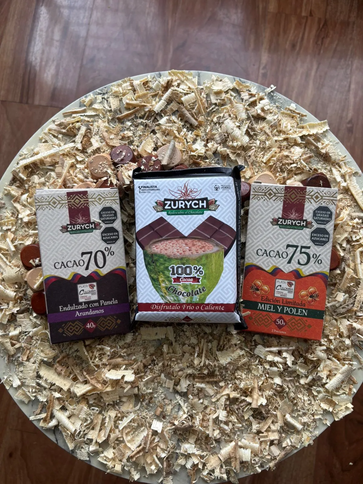Combo especial para amantes del cacao intenso con productos Zurych: chocolate de mesa 100% cacao, chocolatina 75% edición especial con miel y polen, y chocolatina 70% con arándano. Tres niveles de profundidad, un mismo origen: cacao real. 🍫🌿